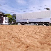 砂地に砂利を敷いていた総社営業所前は雨が降ると
